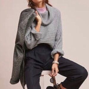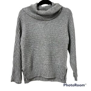 🔹MOTH by Anthropologie Grey Ribbed Cowl Neck Sweater with Side Slits.