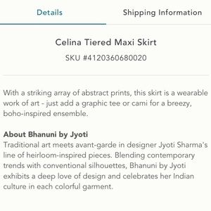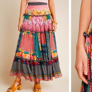 Anthropologie NWT Bhanuni by Jyoti Celina Tiered Embellished Maxi Skirt Size 2.