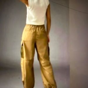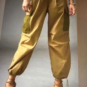 ANTHROPOLOGIE Oversized Khaki and green cargo parachute pants Sz 32 NWT