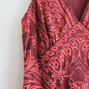 ANTHROPOLOGIE PILCRO Crimson Cotton Pilcro Burnout V-Neck Velvety Dress - Size US 4