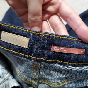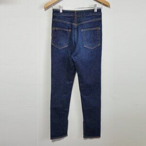 ANTHROPOLOGIE Pilcro The Split Straight Jeans Hi-Rise Dark Blue Women's 26 x 33"