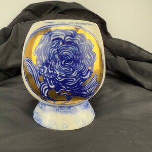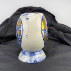ANTHROPOLOGIE Ruan Hoffmann Jardin des Plantes Ceramic Blue & Gold White Vase