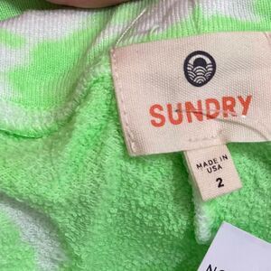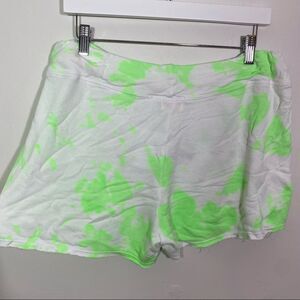 ANTHROPOLOGIE Sundry White and Neon Green Cotton Athletic Sweatshorts