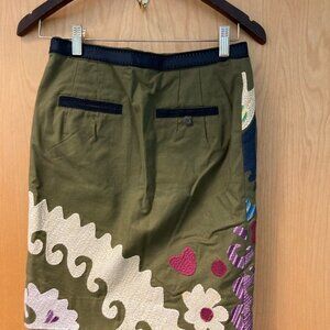 VANESSA VIRGINIA Anthropologie Pencil Skirt Tulipa Embroidered Green Floral Lined Sz 2