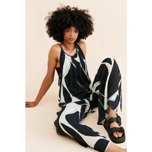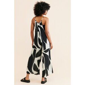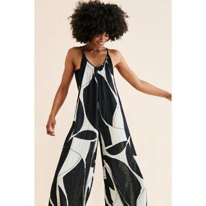 ANTHROPOLOGIE White Black Sheer Printed Cotton Gauze Wide Leg Jumpsuit, Size L
