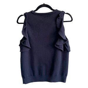 ANTHROPOLOGIE by Anthropologie Sleeveless Knit Sweater Tank Top Ruffle Blue S