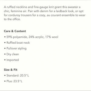 ANTHROPOLOGIE ruffled boat neck sweater size 1X cozy warm coral wool blend knit