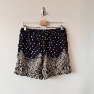 Anthropology Hei Hei Luna high waisted linen blend shorts. Black and brown floral and paisley print. Faux wrap in front.