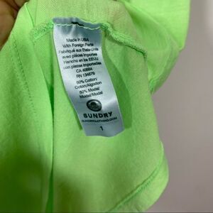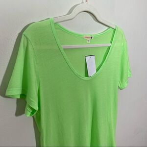 ANTHROPOLOGIE Sundry Neon Green V-Neck 100% Cotton T-Shirt