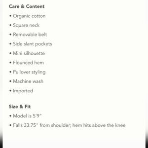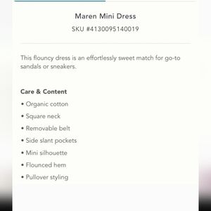 ANTHROPOLOGY NWT MAREN COTTON MINI DRESS WITH BELT