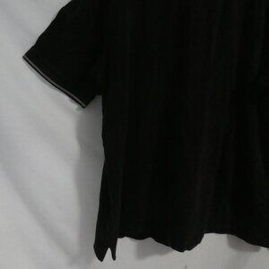 A sleek black polo shirt with a classic collar and buttoned neckline