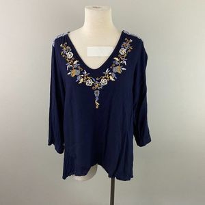 ANTILIA FEMME Blue Shirt with Floral Embroidery