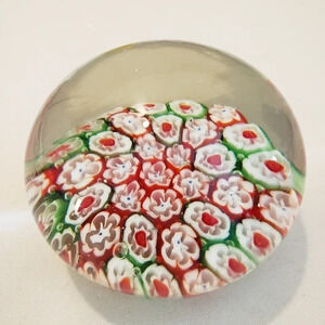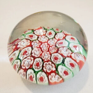 ANTIQUE Blown Glass Millefiori Paperweight Floral