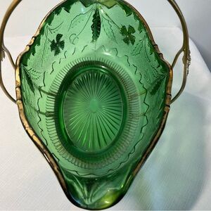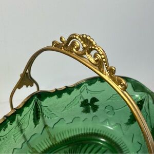 ANTIQUE Bride’s Basket Gilt Glass Bowl with Victorian Silver Plate stand.
