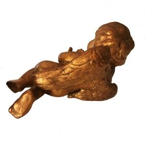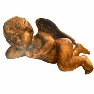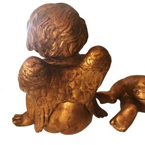 ANTIQUE GOLD LEAF CERAMIC CHERUBS SET OF 2