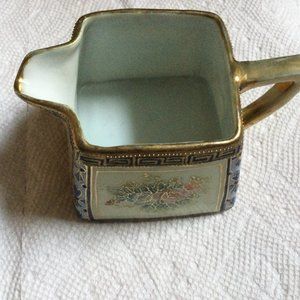 ANTIQUE HAND PAINTED SQUARE NIPPON CREAMER ROSES GOLD BLUE PINK SMALL
