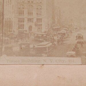 ANTIQUE Stereograph Card New York Times Building in Traffic International