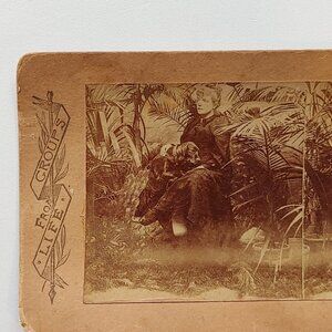 ANTIQUE Stereograph Card Victorian Woman and Bloodhound in Garden