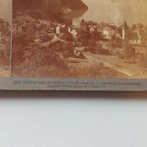 ANTIQUE Stereograph Sisikon and the Mighty Uri-Rothstock(9620 ft), Switzerland