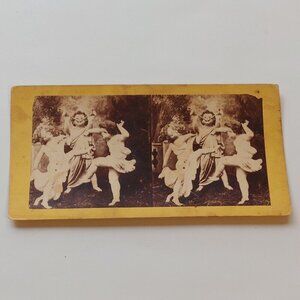 ANTIQUE VICTORIAN STEREOGRAPH CARD Cherub Waltz Trumpets