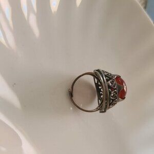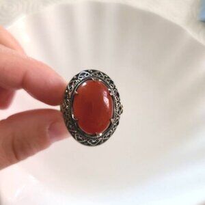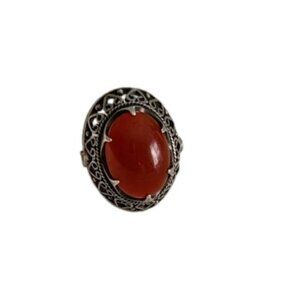 ANTIQUE Vintage Chunky Sterling Silver Carnelian Statement Ring 5 Royalcore