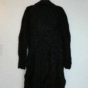 ANTONELLO Black Boiled Wool Button Front A Line Long Coat Jacket Small S Italy