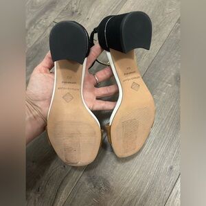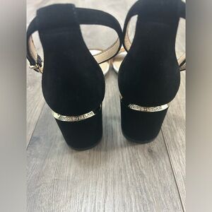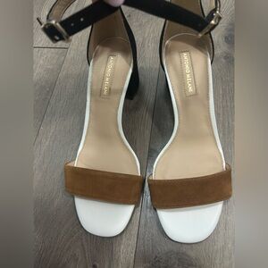 ANTONIO MELANI Odella Suede Ankle Strap Black Beige Open Toe Heels