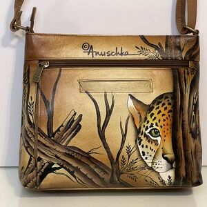 ANUSCHKA Leather Hand Painted Crossbody Bag Purse African Leopard Print