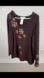 👛 (ANY 2/$20) Laura Petites Brown Long Sleeve V-Neck Sweater Floral Appliqués