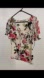 NiCOLA Feminine Short Sleeve Floral Polyester/Spandex Pull On Blouse with unique decorative neckline. Good condition. There is one tiny pull on the back left shoulder area.