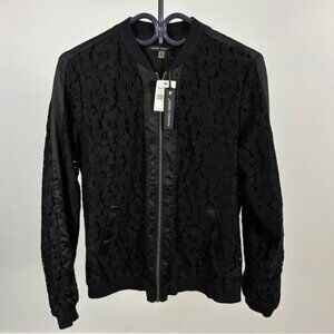 NWT NORTHERN REFLECTIONS Amanda Green long sleeved Jacket with lace cutouts overlay: a truly versatile styling piece with a strong metal zipper and front angle pockets and silky look piping