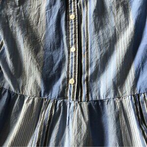👛 (ANY 2/$35) GAP Unlined Blue-White Striped Tiered Shirt Dress