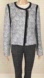 Family preowned LAURA Collarless Shoulder Pads Blue/Grey Blazer with Black Trim: has a very pleasant weave and is in excellent condition. Pockets are imitation. Surprise zipper detail at sleeves end. It’s a well constructed garment with such defined tailored darts.