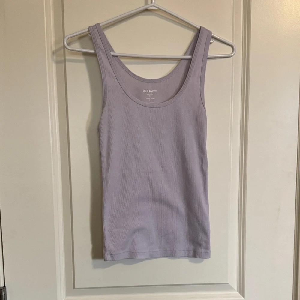Old Navy sleeveless tank with a scoop neckline. Soft lavender color and smooth knit fabric. Fitted silhouette for layering or solo wear.