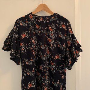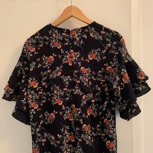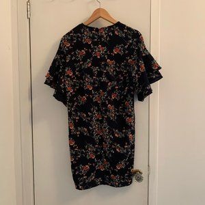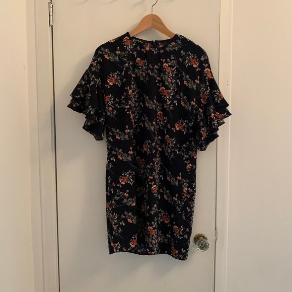 Navy floral print dress from ASOS with ruffled sleeves Size 2 US Never worn without tags
