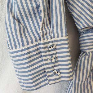 APART White Blue Stripes Pink Lips Patch Collared Flare Sheath Shirt Dress 6 M
