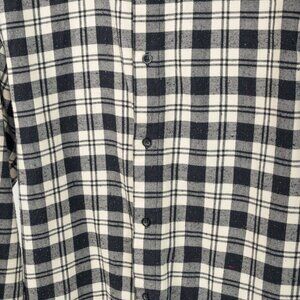 Made in Tunisia, this shirt from A.P.C. is crafted with a cotton-blend flannel in a Navy and White speckled plaid, and features long sleeves, buttoned cuffs, a buttoned collar neckline, front button closures, and a rounded hem.