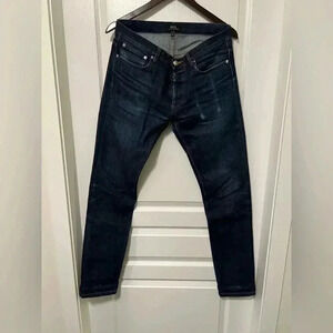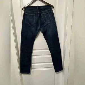 Wonderful selvedge denim that produces some amazing fades. Outgrew it and doesn’t fit me anymore. Plenty of life left in it. Fades are barely starting to pop. Nicely broken in for someone else to enjoy. Left pocket bag and the denim near it has been patched to prevent holes.