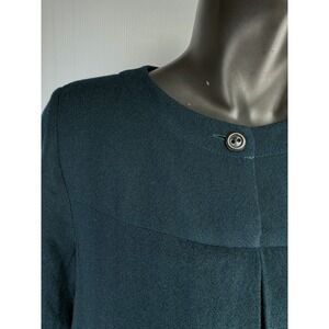 A.P.C Lucile mini dress, A.P.C. wool dress, dark teal wool mini dress, French minimalist dress, Rue Madame Paris, women's size 38, long sleeve shift dress, A-line swing dress, cotton silk lining, classic modern dress, fall winter dress, office to evening dress.