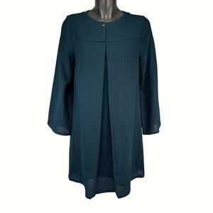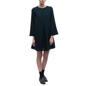A.P.C. Rue Madame Paris Wool Bell Sleeve Box Pleat Dark Teal Mini Dress 38
