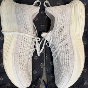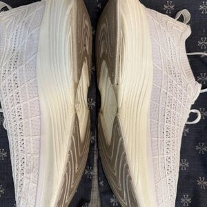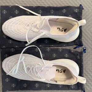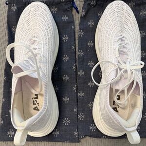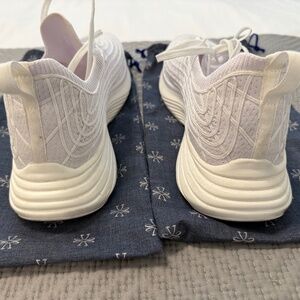 All white and in very good condition aside from the scuff on the back corner heel shown in photo, Might come out with some cleaning.