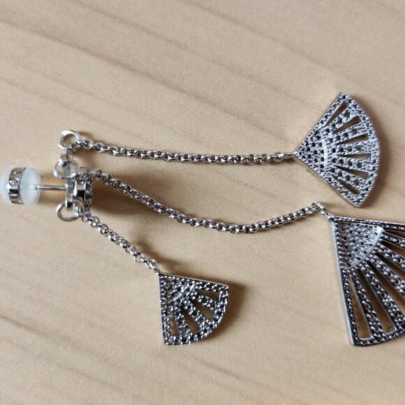 Rhodium-Plated Sterling Silver & Cubic Zirconia Asymmetric Long Flamenco Earrings from APM Monaco.