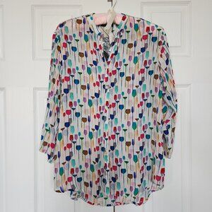 APNY NEW YORK WATERCOLOR WINE GLASS PRINT WOMAN'S BLOUSE SIZE S
