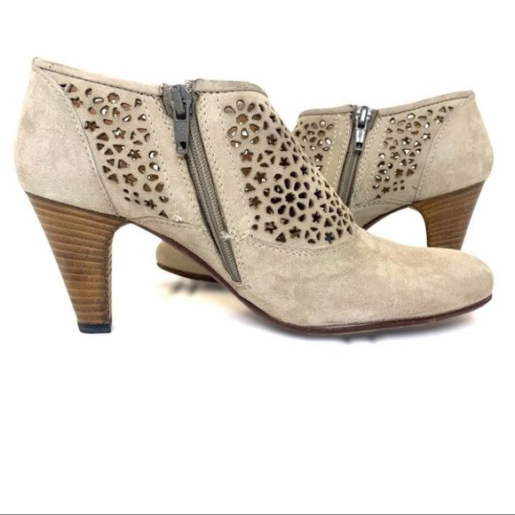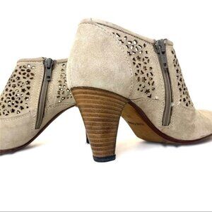 APOSTROPHE ANKLE SUEDE LEATHER SIDE ZIPPER PERFORATED HEELED BOOTS