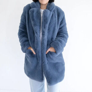 APPARIS Stella Blue-Grey Faux Fur Lapel Teddy Winter Coat Cozy Thick Jacket S