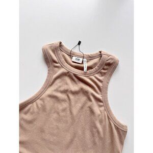 APRES ACTIF Beige Champagne Essential Ribbed Cropped Racerback Tank, Size S