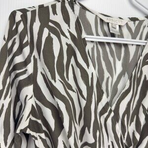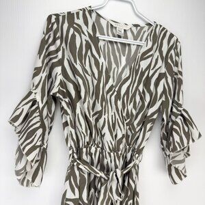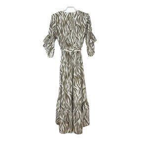 APRICOT NWOT Zebra Print Flowy Ruffles Dipped Hem Midi Maxi White Green Dress S