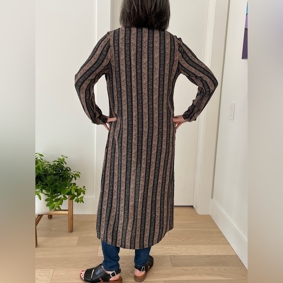 APRIL CORNELL Long Duster Button Front Coat Striped Floral Boho Chic Western