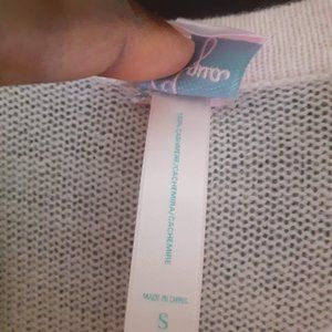 AQUA 100%CASHMERE LONGER SLEEVE RIBBED KNIT SWEATER ,Cream SMALL with measuremnt