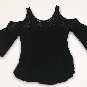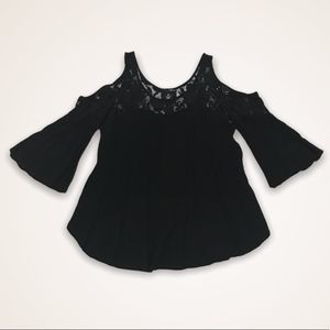 Gorgeous lace trim cold shoulder top from Aqua Bell sleeves Very loose and flowy fit Pit to pit 18” Excellent condition
